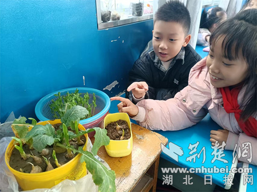京中网(湖北日报网)讯(通讯员:石宝)11月中下旬,为了培养小学生的观察能力和责任感,襄阳市磁器街小学语文组特别策划了一项别具一格的育苗实践任务“我是小农”。同学们积极响应,变身“小农艺师”,种豆芽、种萝卜芽。教室、窗台顿时充满了明亮的“绿色希望”。