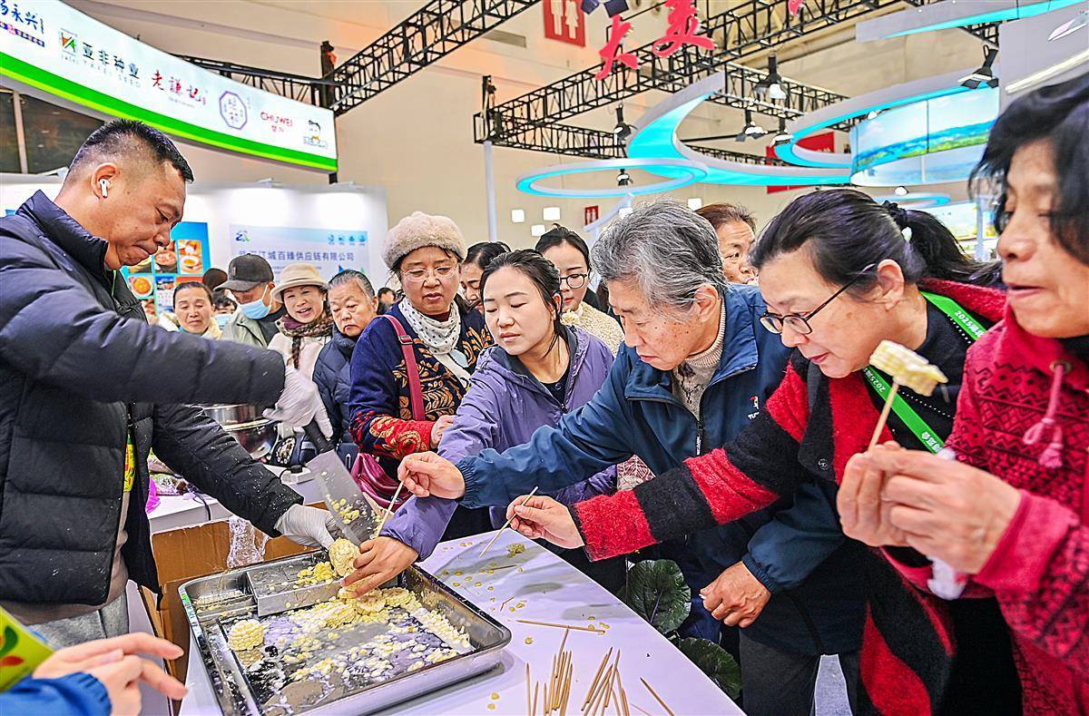 2025湖北省农业展览会于11月28日在武汉国际展览中心(汉阳国展)举行。湖北省农业展览会(至12月2日)由省农业农村局、省乡村振兴局主办。重点展示湖北省现代农业发展新气象、新成果、新成果,促进品牌传播和产销对接,打造“技术提升、品牌引领、产业融合、全民交流”的农业盛会。参展商数量将接近2000家,创历史之最。来自全国各地的200余名大型采购商齐聚武汉,参与本次农业盛会,分享这片富饶土地上丰收的喜悦。 (图片提供:湖北日报媒体记者 朱西勇)11月28日,2025年湖北A农博会在武汉国际展览中心(汉阳国展)举办。玉米展示摊前,顾客聚集在一起品尝玉米。 2025湖北省农业展览会于11月28日在武汉国际展览中心(汉阳国展)举行。 2025湖北省农业展览会于11月28日在武汉国际展览中心(汉阳国展)举行。玉米展示摊前,顾客聚集在一起品尝玉米。 2025湖北省农业展览会于11月28日在武汉国际展览中心(汉阳国展)举行。 2025湖北省农业展览会于11月28日在武汉国际展览中心(汉阳国展)举行。菜摊上,食客们都被它的味道所吸引。 2025湖北省农业展览会11月28日在武汉国际博览中心举行ibition中心(汉阳国家展览馆)。农业无人机也将展出。 2025湖北省农业展览会于11月28日在武汉国际展览中心(汉阳国展)举行。农业无人机也将展出。 2025湖北省农业展览会于11月28日在武汉国际展览中心(汉阳国展)举行。摊位上展示着蘑菇大餐的食谱。 2025湖北省农业展览会于11月28日在武汉国际展览中心(汉阳国展)举行。参展商在展厅内推销自己的产品。 2025湖北省农业展览会于11月28日在武汉国际农业中心展览馆(汉阳国展)举行。参展商在展厅内推销自己的产品。 2025年湖北省农业展览会将于11月28日举行。在武汉国际展览中心(汉阳国展)举办。参展商在展厅内推销自己的产品。 11月28日,2025湖北农博会在武汉国际展览中心(汉阳国展)举行,并在展位举行演出。 2025湖北省农业展览会于11月28日在武汉国际展览中心(汉阳国展)举行。展商现场制作黄皮豆丝。 2025湖北省农业展览会于11月28日在武汉国际展览中心(汉阳国展)举行。